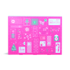 30 ml de loção corporal, 30 ml de champô, 30 ml de condicionador, 30 ml de gel de banho, 30 ml de esfoliante corporal, 30 ml de esfoliante facial, 30 ml de limpador facial, 30 ml de creme para as mãos, 20 ml de manteiga corporal, 20 ml de creme para pés, 10 g de bálsamo labial, 10 ml de creme facial, 8 ml de máscara facial em gel, sabonete estrela, sabonete árvore, bomba de banho estrela, bomba de banho floco de neve, sais de banho, confetes de banho, bomba de banho, esponja de banho, separador de dedos, lima de unhas, elástico para o cabelo.