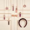 Este blush colecionável vem com um pequeno anel, para que possa pendurá-lo na sua árvore de Natal, prendê-lo às suas chaves ou na sua bolsa.