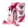 O conjunto inclui uma luxuosa loção de banho espumosa num elegante recipiente que lembra uma garrafa de champanhe e três bombas de banho espumosas com um delicioso aroma a flor de cerejeira.